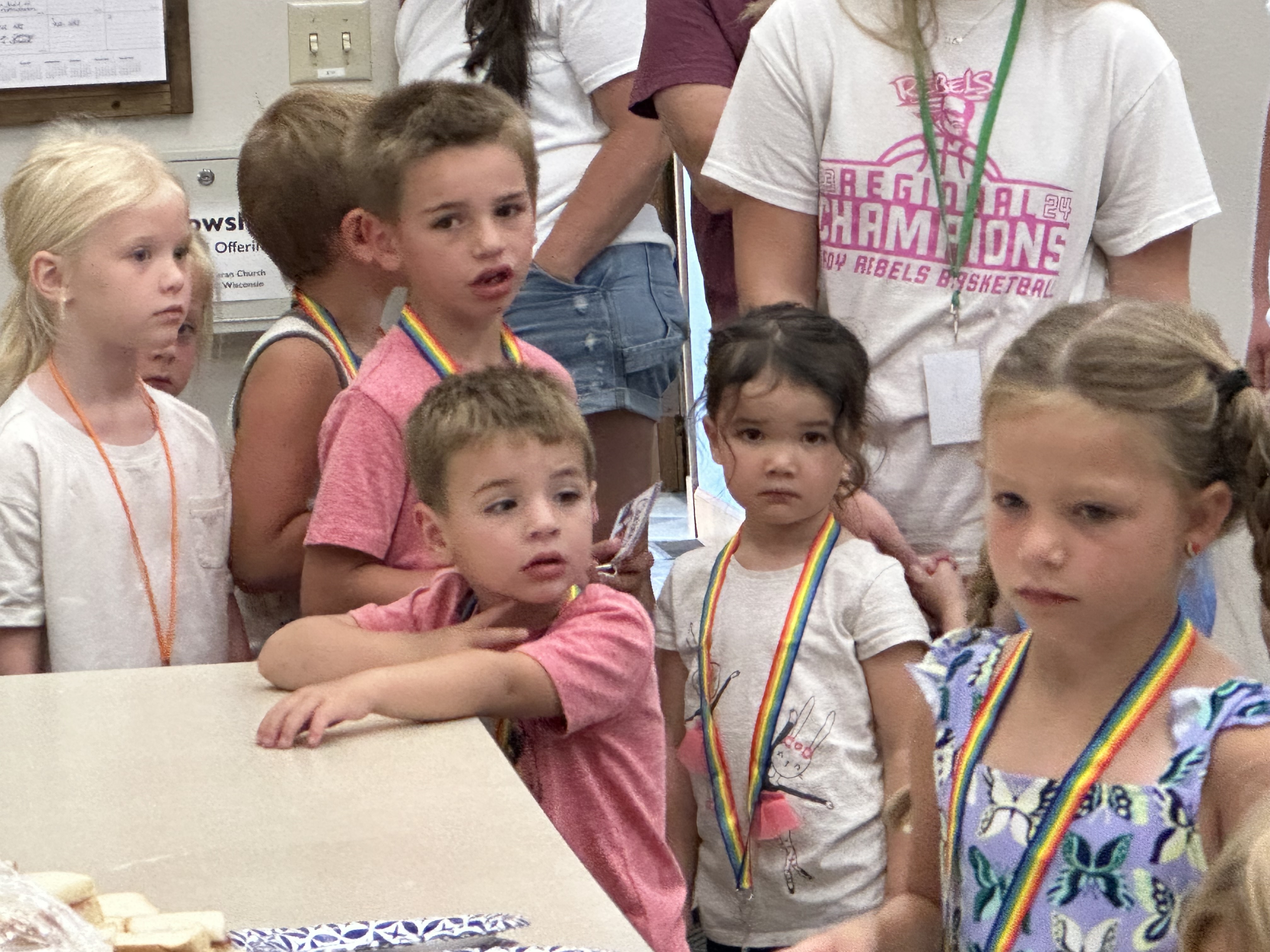 Vacation Bible School welcomes everyone from potty trained three-year-olds to 102 years old. Our group includes not only children from our area but also children who come from other parts of the country for our week of Bible School. We have jobs for everyone from sixth grade and older. We love teaching and learning about our Triune God through Bible stories, crafts, games, worship, life application lessons of the Bible, and snacks. All our workers love to share God’s love and forgiveness with the children who come.